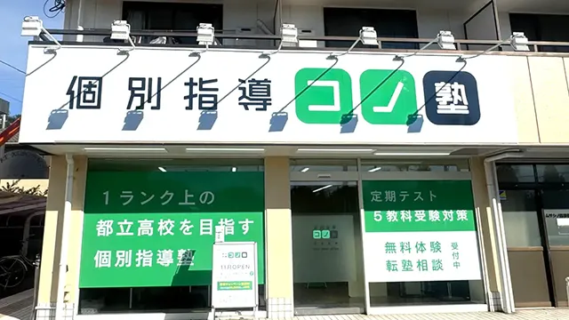 コノ塾は4都府県で110校舎以上を展開し、公立高校入試に必要な5科目全てに対応した授業を行っています。生徒の90%以上が定期テストで50点以上アップ※、公立高校へ合格するなど5科目すべての学力を受験レベルに引き上げるきめ細かな個別指導が、手の届きやすい定額制で受講できます。(※コノ塾調べ)