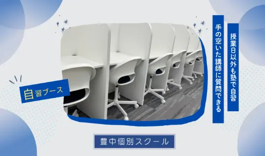 授業がない日も利用でき、平日土曜は15時~22時まで開室 静かで集中できる環境で、自宅で集中できない生徒も学習がはかどる わからないことは講師に質問できる安心のサポート体制