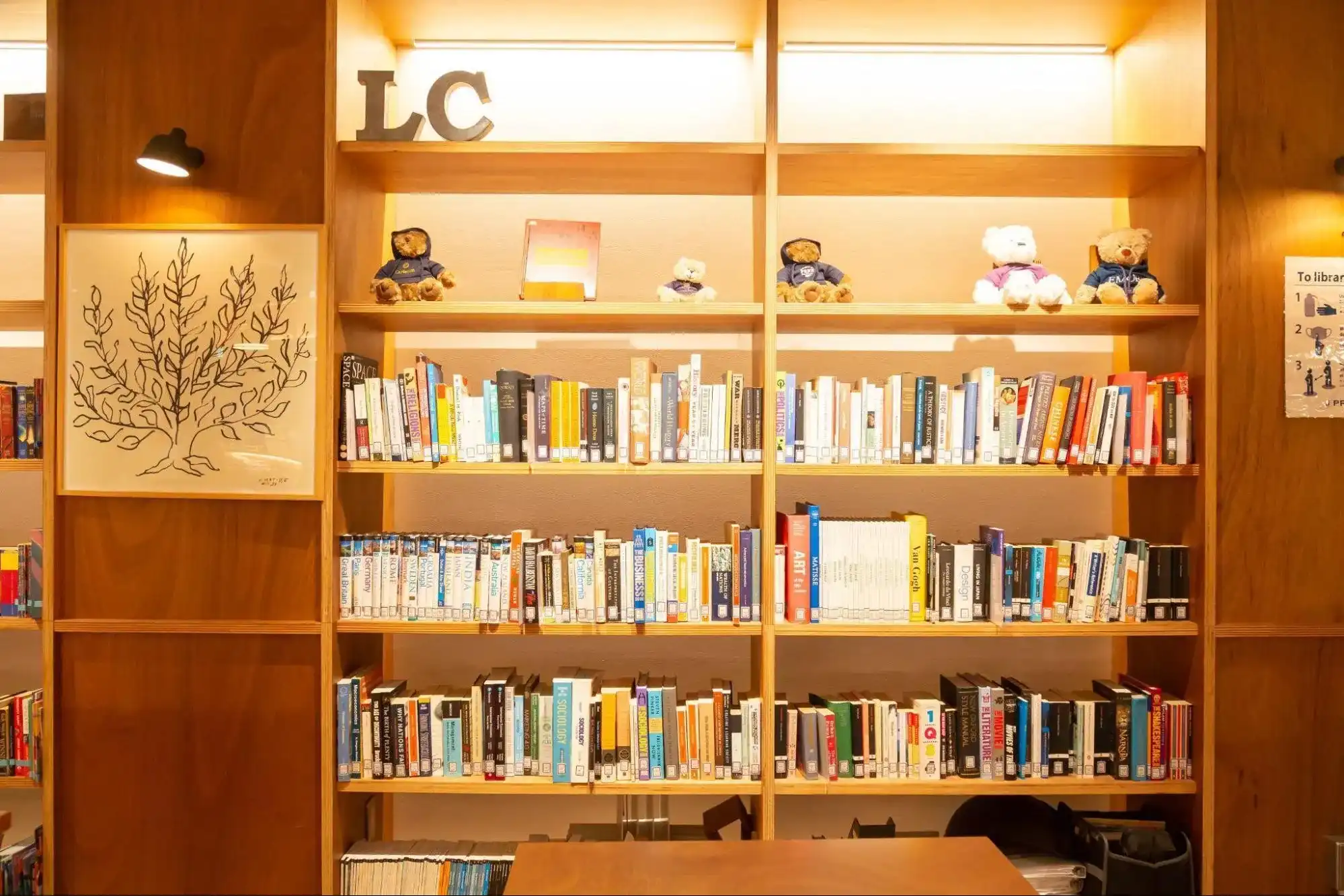 それはたやすいことではありませんが、J PREP では講師も生徒も授業を楽しんでいます。私自身は40年前に大好きなハリウッド映画で英語を覚えました。楽しみながら学ぶことは最大の学習効果を生むと思っているので、校舎も、学ぶ楽しさを感じられるような雰囲気づくりを大切にしています。たとえば、ミシガン大学やケンブリッジ大学などの名門校に通っている卒業生がたくさんいるのですが、校舎に置いている本棚には卒業生たちが通っている留学先のカレッジマスコットがたくさん置いてあります。よく見るとハーバードとか書いてあるんです。生徒たちにとっては身近な先輩の進路として、刺激になるとともにワクワク感も感じられるのではないかと思います。
