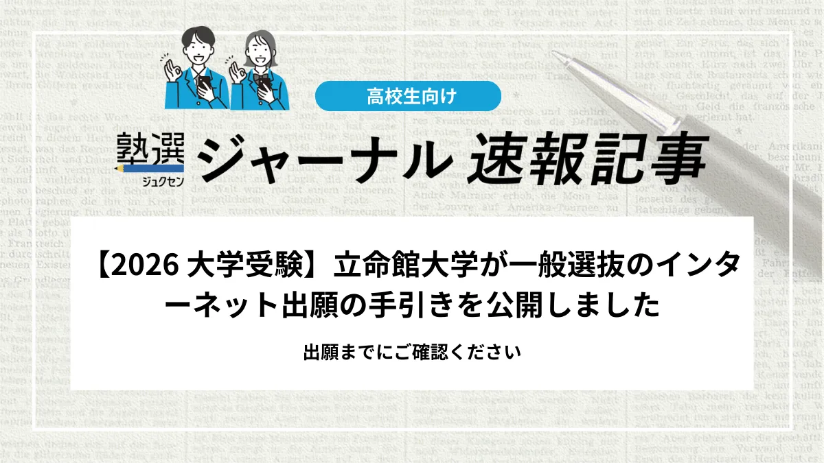 2025年12月24日に立命館大学から「2026年度 一般選抜 インターネット出願の手引き」が公開されました。