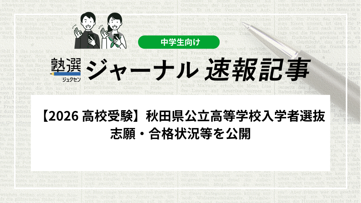 2026年2月5日、秋田県教育委員会が「秋田県公立高等学校入学者選抜志願・合格状況等」を公開しました。