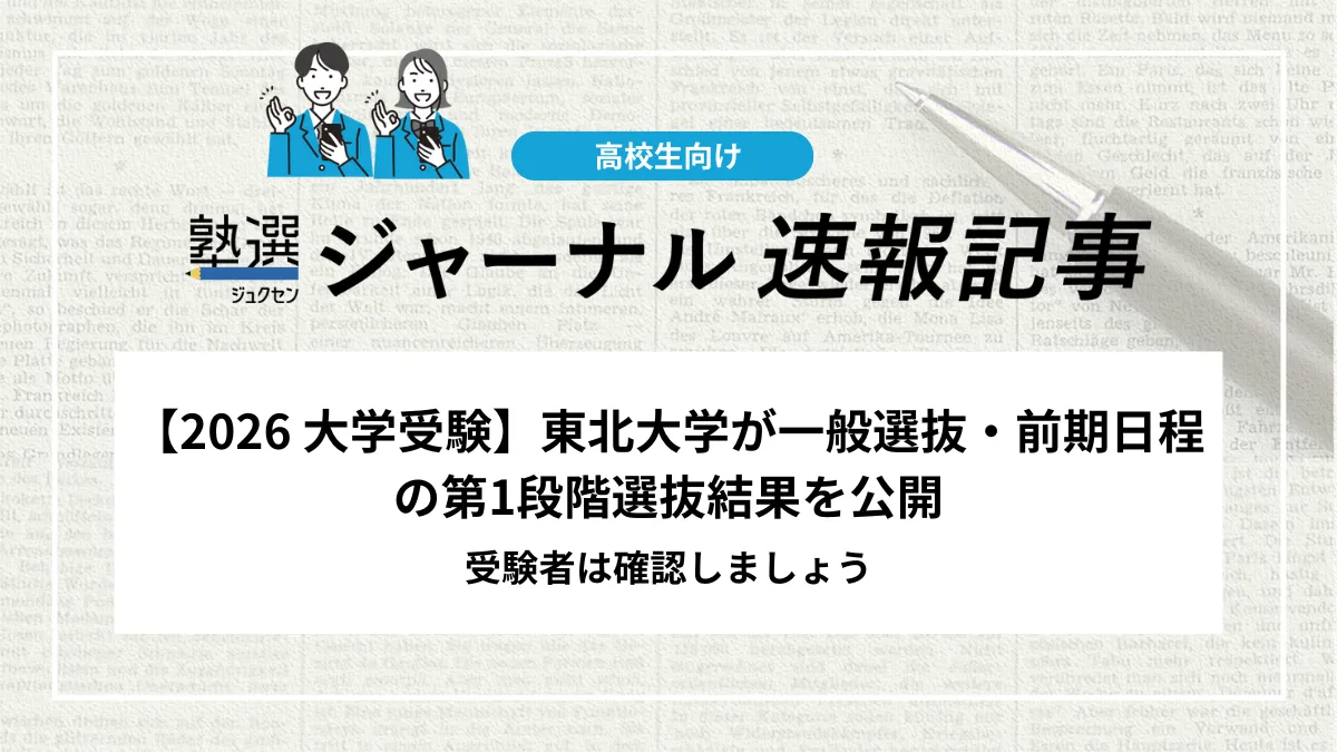 東北大学は、令和8年度(2026年度)一般選抜(前期日程)における第1段階選抜の結果を公表しました。同大学の合格発表サイトにて、第1段階選抜を通過した志願者の受験記号番号が公開されています