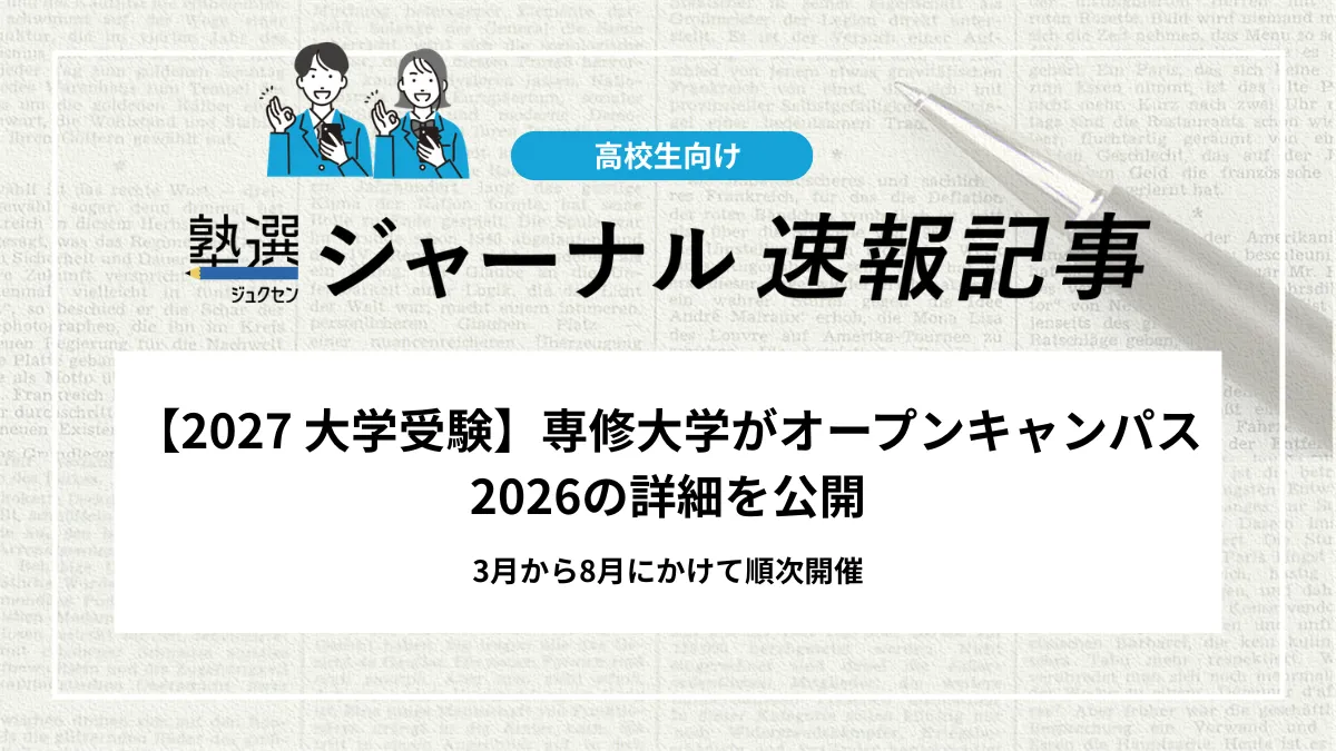 【2027 大学受験】専修大学がオープンキャンパス2026の詳細を公開|3月から8月にかけて順次開催