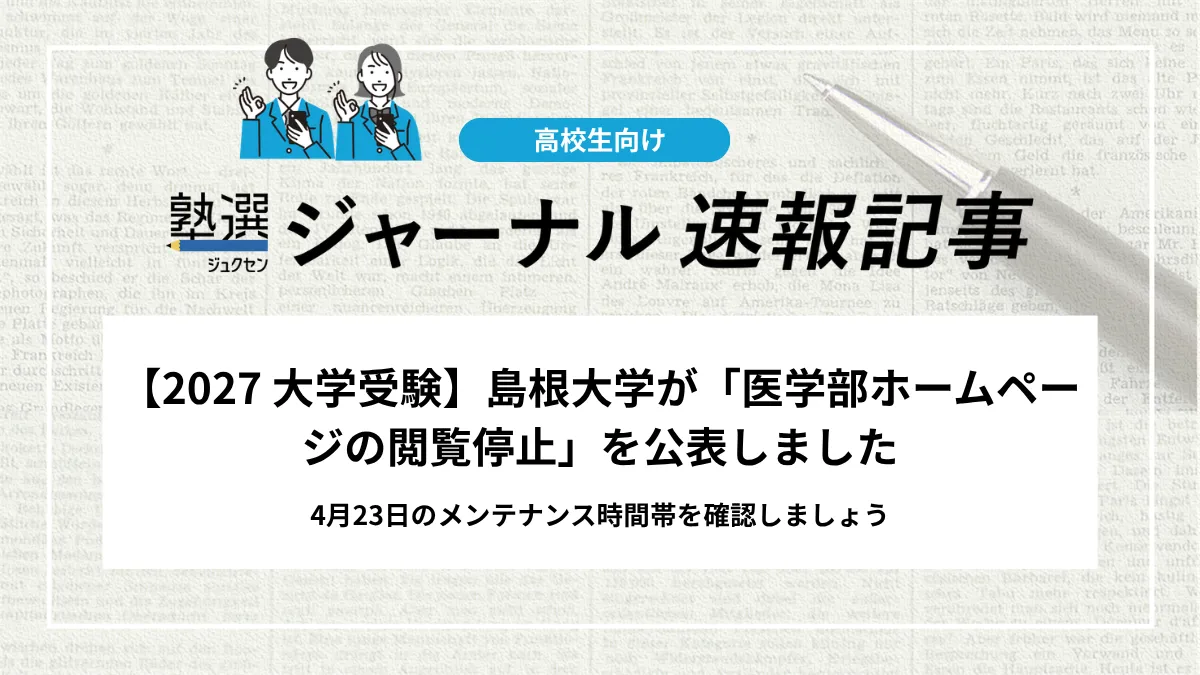 島根大学は、2026年4月9日、ネットワーク機器の更新作業に伴い医学部に関連する公式ウェブサイトの閲覧が一時的に停止すると発表しました。作業期間中は、医学部および附属病院を含む対象サイトへのアクセスができなくなります。