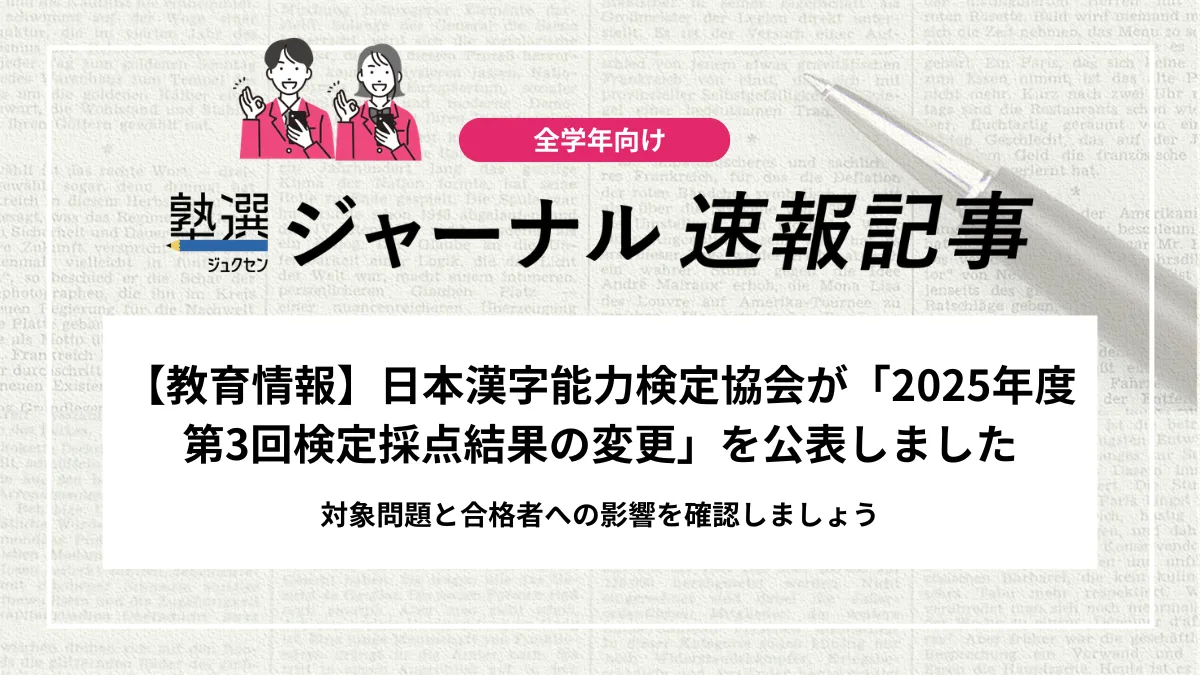【教育情報】日本漢字能力検定協会が「2025年度第3回検定採点結果の変更」を公表しました|対象問題と合格者への影響を確認しましょう
