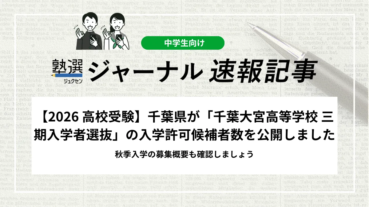 参考文献:令和8年度千葉県公立高等学校入学者選抜における通信制の課程(千葉大宮高等学校)の「三期入学者選抜」の入学許可候補者数について